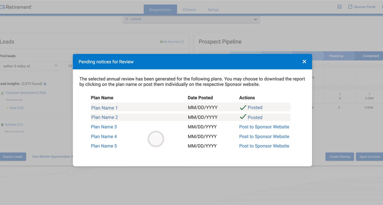 Report posting fell into the 80/20 category of advisor tasks — small, routine actions that required minimal effort but had an outsized impact on efficiency and compliance. Previously, it was buried deep within unrelated sections of the plan detail page, and advisors had to complete it independently for each plan.